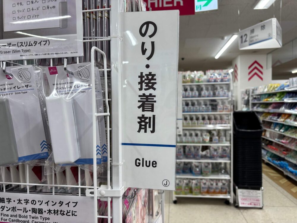 何コーナーか迷ったときは、店内の案内表示で「接着剤」や「補修用品」と書かれた場所を目印にすると効率的。