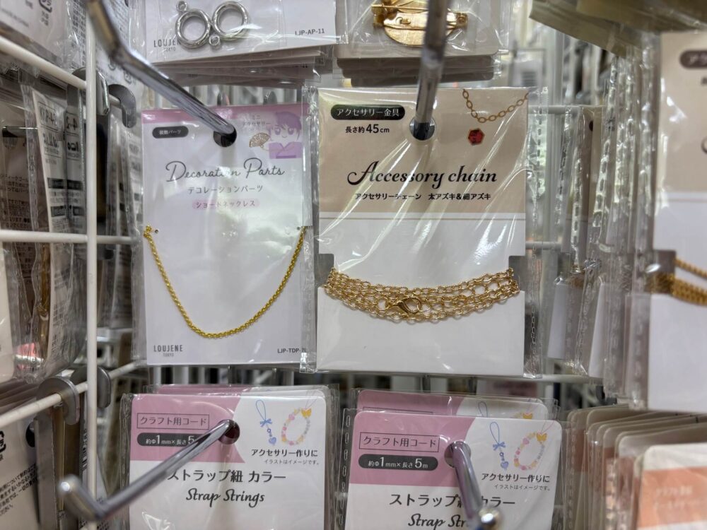 アクセサリーパーツコーナーで見つかる金属チェーン