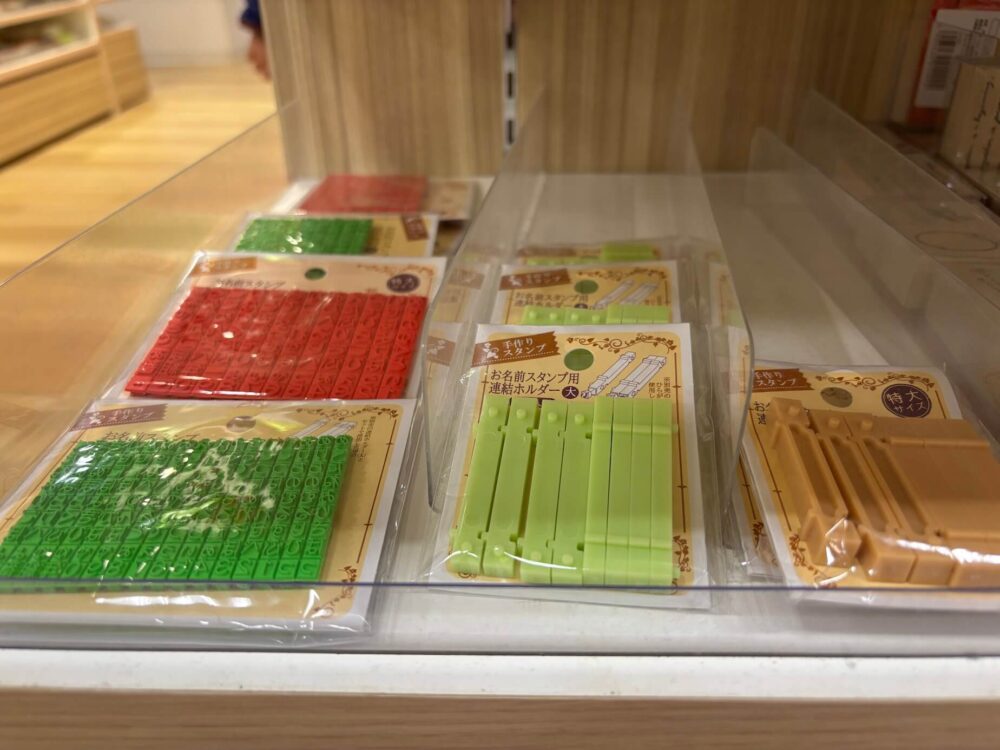 こちらは文具コーナーの専用エリアに置かれていることが多く、通常のお名前スタンプとは少し離れた場所にあることもあります。