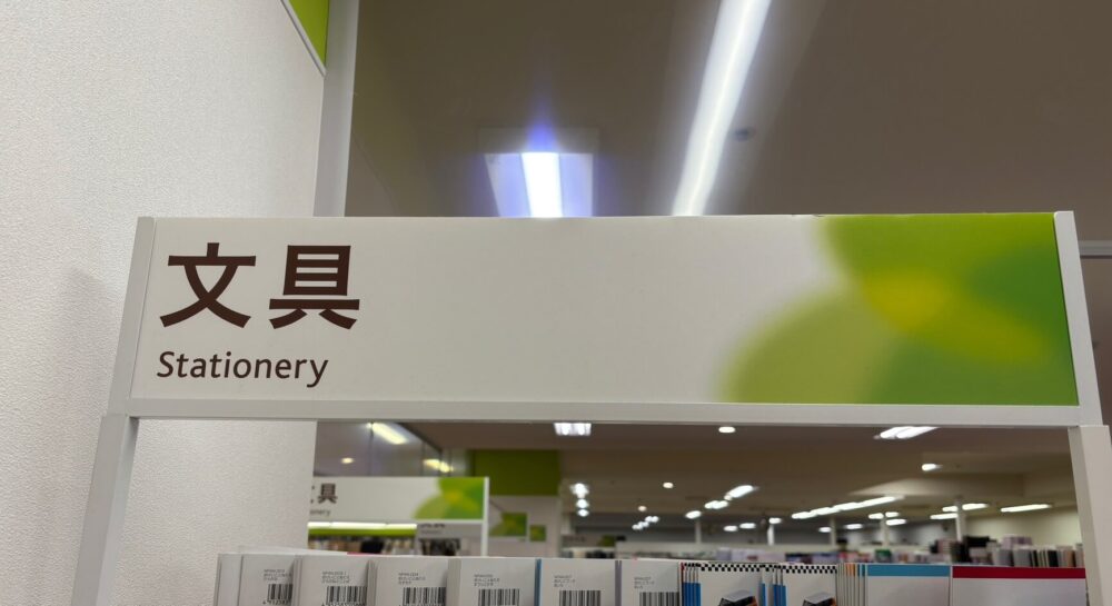 初めて訪れる店舗では、まずは店内マップや天井の案内表示で「文具」を探すことをおすすめします。