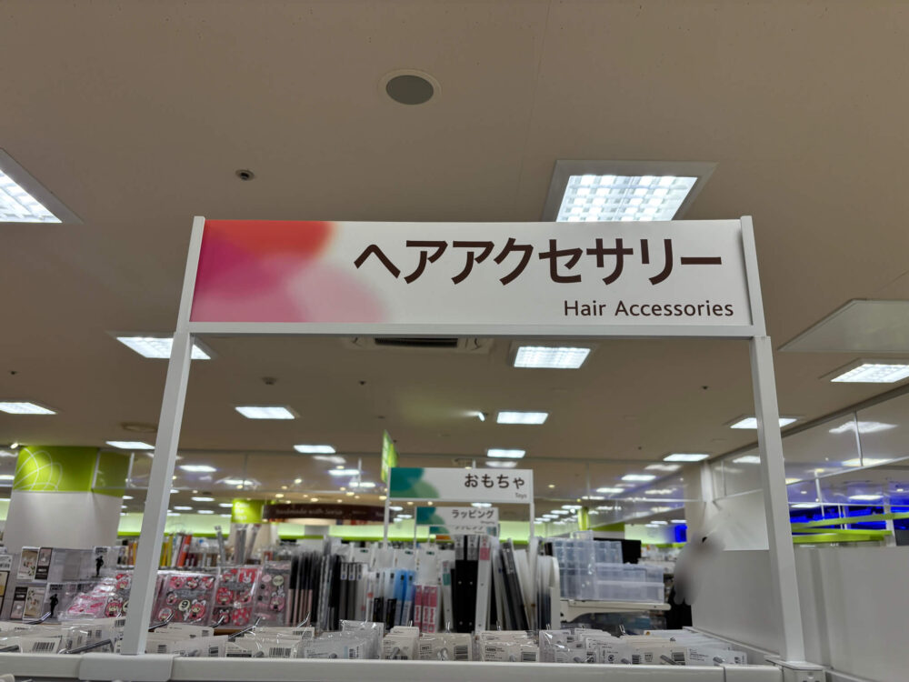 具体的には、ヘアゴム・ストッキング・フットカバーなどのファッション小物が集まっているエリアです。