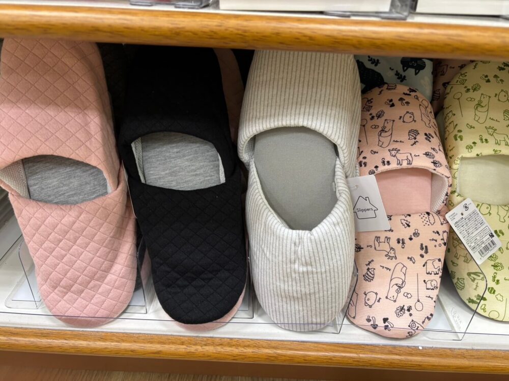 このコーナーは日用品エリアや子供用品の「何コーナー」かと言えば、スリッパやルームシューズと同じ生活雑貨コーナーに配置されていることが多いです。