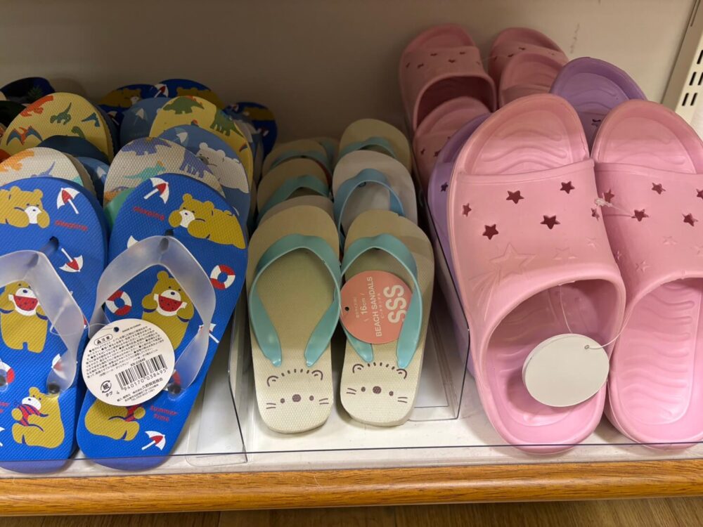 夏物コーナーで見かけるサンダル類は以下の通りです: