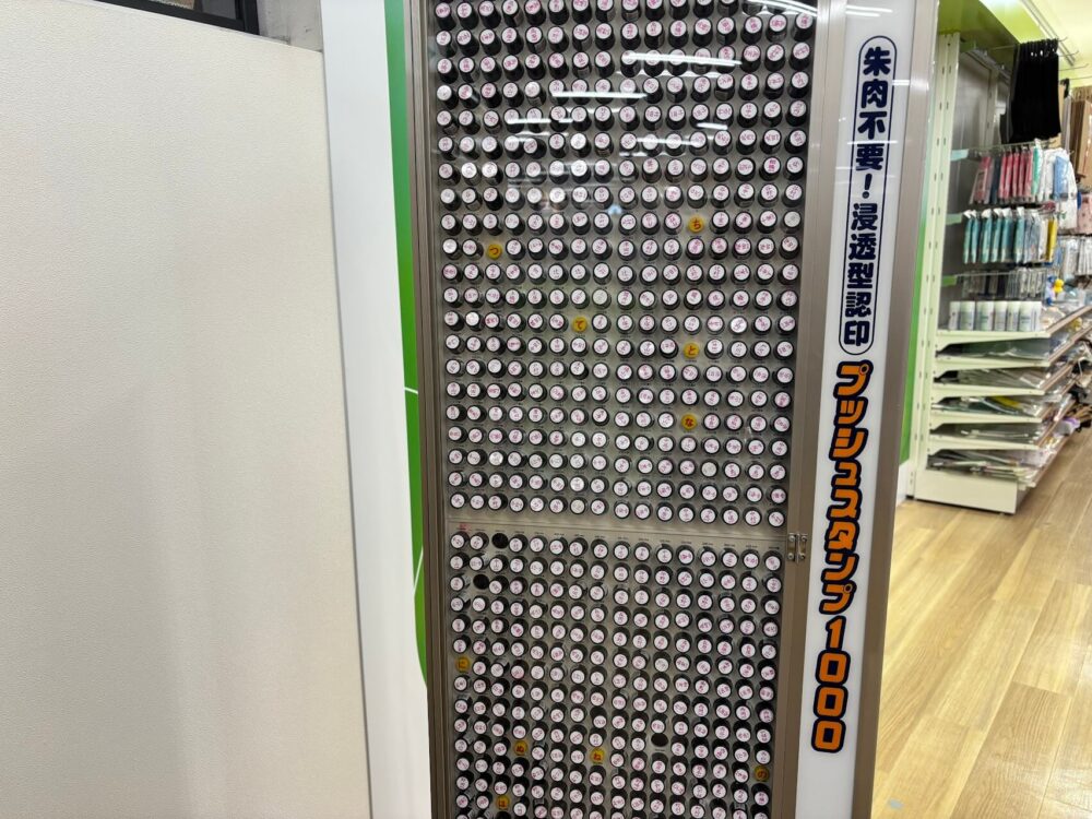私が実際に複数店舗を回って確認したところ、ほとんどの店舗で文房具売り場の一角に印鑑専用の棚が設置されていました。