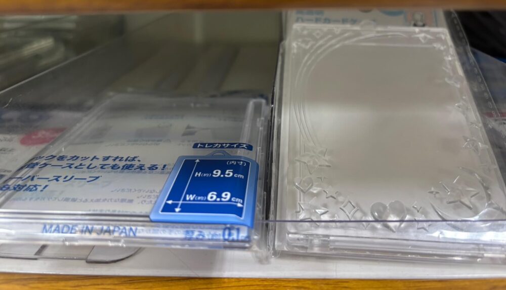 セリアのスリーブ売り場では、トレカ用だけでなく名刺入れやカードケースなども一緒に陳列されていることがほとんどです。
