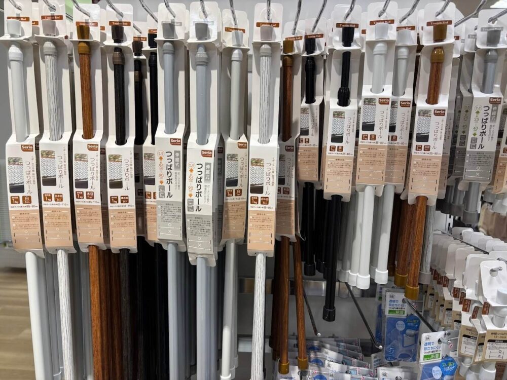 突っ張り棒の種類も豊富で、短いものから長いものまでサイズ別に分けて陳列されているため、目的に合った商品を見つけやすいでしょう。